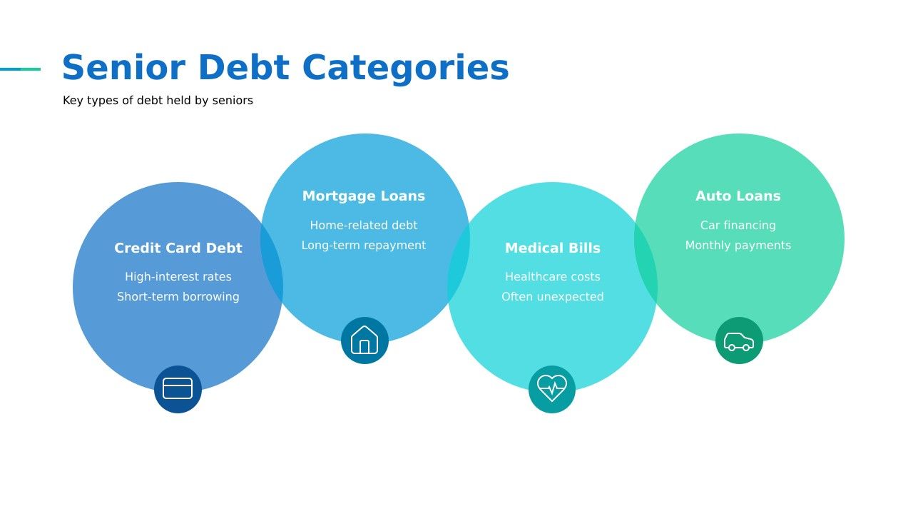 - Mortgage and Home Equity Loans: Many seniors still carry mortgage debt or have even taken out home equity loans to better manage expenses and debts.